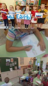 4 ноября в России отмечается День народного единства. Это особенный государственный праздник современной России. Это праздник единства всех национальностей, проживающих на территории нашей страны. День народного единства является символом уважения и гордости за великое прошлое нашего государства. Накануне праздника в нашем детском саду проходили мероприятия, посвященные этой дате. В ходе мероприятий дети в доступной форме познакомились с историей возникновения праздника, событиями, связанными с этой датой. Педагоги в ходе мероприятий объясняли детям, что Россия — великая многонациональная страна с героическим прошлым и счастливым будущим. В ходе занятий ребята вспомнили о том, как велика и красива наша Родина, как богата событиями её история, закрепили свои знания о государственных символах. Мероприятия были разнообразные и интересные: чтение детской художественной литературы об истории России, аппликация, знакомство с героями далекого прошлого, рассматривание иллюстраций о России, знакомство с историческими памятниками и символами государства.