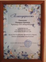 Благодарность за оказание спонсорской помощи.