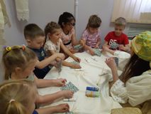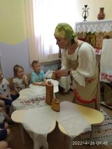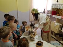 С 25 по 29 апреля в детском саду действовал мини-музей «Карельская горница». В музее было представлено много семейных реликвий и старинных вещей наших сотрудников. Наших воспитанников встречала хозяюшка горницы. Все возрастные группы побывали в гостях у хозяюшки. Дети младшего возраста впервые попали в такой музей и с интересом знакомились с экспонатами: домашней утварью, карельской вышивкой, народными игрушками. Главная особенность нашего музея, то что экспонаты можно брать в руки и рассматривать. С ребятами, которые в прошлом году побывали в музее, проводились тематические занятия. Ребята из группы «Одуванчики» знакомились с самоваром, традициями, связанными с чаепитием, сравнивали чайник и самовар, посмотрели на угольки, благодаря которым самовар закипает и угостились баранками из русской печи. Воспитанники старшей группы «Светлячки» и подготовительной группы «Василёк» рассматривали народные куклы из ткани и лыка, знакомились с названиями кукол и их предназначением. А затем сами изготовили куклу-пеленашку по показу хозяюшки горницы. Благодаря таким мероприятиям воспитанники приобщаются к истокам народной культуры, у детей развиваются представления о русской и карельской культуре и карельском быте.