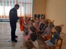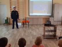 6 июня состоялась встреча ребят старшего дошкольного возраста группы "Светлячки" с представителем Карельской Республиканской поисково-спасательной службы. Тема встречи: "Соблюдение правил безопасного поведения на воде в летний период". Спасатель Ермолаев Александр Григорьевич рассказал ребятам о важных правилах поведения на воде. Прежде всего к таким правилам относятся: