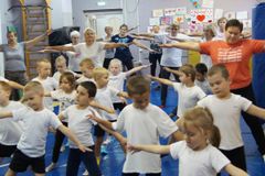 30 сентября ребята подготовительной группы участвовали в спортивном мероприятии «Весёлая кардиотренировка», проходившем в Молодёжном клубе Перевалки. Спортивная программа была посвящёна Дню сердца и Дню пожилого человека. Два поколения - воспитанники детского сада и участники «Школы пациента» при поликлинике №1 проходили спортивные дорожки, участвовали в подвижных играх, музыкальных разминках.