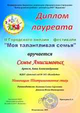 С 1 по 15 апреля проводился II городской онлайн фестиваль "Моя талантливая семья".