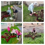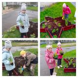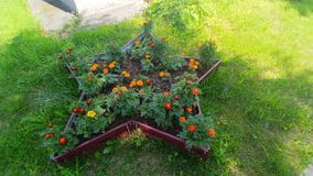 Наши воспитанники вместе с педагогами сажали семена бархатцев, ухаживали за рассадой и высаживали её в клумбу в форме пятиконечной звезды.
