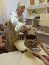 В рамках празднования Дня народного единства в детском саду открыл свои двери мини-музей «Карельская горница». В «горнице» воспитанникам сада были представлены музейные экспонаты, раскрывающие особенности быта карельских крестьян. Ребят встречала радушная хозяйка. От хозяйки ребята узнали о быте, традициях и культуре карел. Воспитанники познакомились с непривычными названиями предметов быта: туесок, короб, чугунок, ухват, прялка, веретено, карти. А также узнали о назначении старинных предметов быта. Поговорила хозяюшка с ребятами и о том, из чего сделаны предметы. Юные посетители музея смогли «прикоснуться к старине»: хозяйка горницы дала возможность потрогать каждый предмет, рассмотреть, изучить его. Такие встречи в музее дают возможность детям лучше познакомиться с историей, бытом, традициями карельского народа. Для развития, обучения и воспитания подрастающего поколения важна связь с прошлыми поколениями, необходимо формирование культурной и исторической памяти. Обращение к народному наследию воспитывает уважение, гордость за землю, на которой живешь.